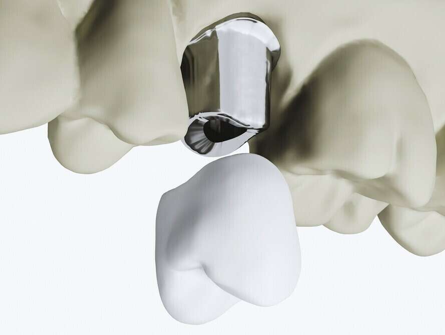 > Cette couronne est ensuite scellée comme s’il s’agissait d’une reconstitution simple.
